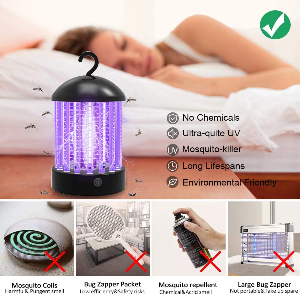 【Widely Used Occasions】This 2-in-1 electric mosquito killer lamp is suitable for many places, This Electric indoor Bug Zapper can be used in living room, bedroom and kitchen. There won’t be any noise, the portable files killer lamp will take you a good sleep. It’s also a good choice to use it in the yard. The portable outdoor mosquito killer trap also great to go out for fishing and camping.
