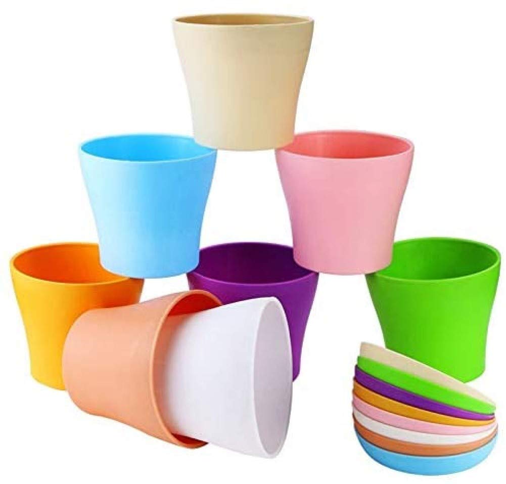 About this item KAHEIGN 8Pcs Blumentöpfe Kunststoff Bunt 14cm Runde Kleine Blumentöpfe, 8 Farben Mini Blumentopf Pflanztöpfe Pflanzenbehälter Innenblumentöpfe mit Palettenschalen für Büro Haus Balkon (14 x 12cm)